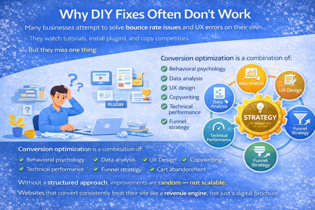 Many businesses attempt to solve bounce rate issues and UX errors on their own.