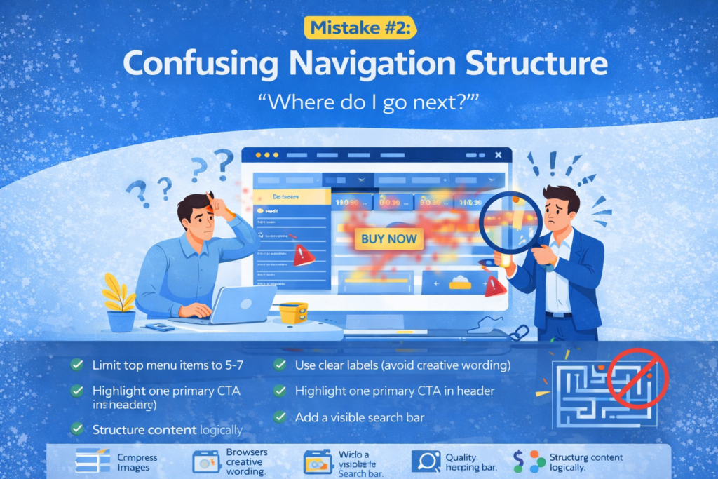 Confusing menus are one of the most common website UX errors that destroy user flow.