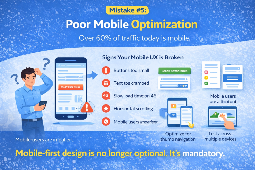 Website conversion mistakes are design, technical, messaging, or structural flaws that prevent users from taking action.